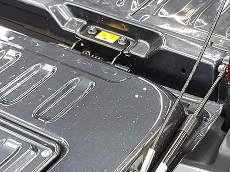 The Retractable tonneau cover is manufactured from tough extruded aluminium panels which are black. The cover is lockable to the tailgate and has a closing/ opening system via pull strap, as well as multiple rest positions.